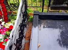 В завершении устанавливаем цветник, наполняем его каменной крошкой. Покрываем надписи на граните акриловой краской, которая сделает текст заметным во время дождя. Перед сдачей объекта клиенту проводим на участке влажную уборку. На последних фотографиях видно, что благодаря наземному покрытию место захоронения преобразилось до неузнаваемости.