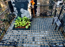 На представленных ниже фотографиях состояние места захоронения на момент прихода клиента. Брусчатка положена, форма цветника и вид оградки изменены. Работа над этим объектом – яркий пример того, как сильно может повлиять на внешний вид участка лишь одно наземное покрытие.